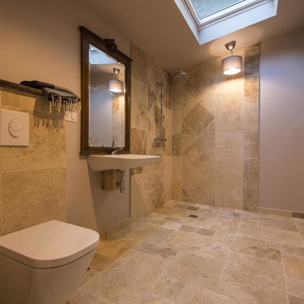 - Chambre 1 : 15 m² – Lit Queen size (160×200) + salle d’eau privative avec douche à l’italienne et vasque
